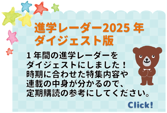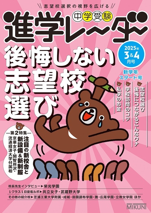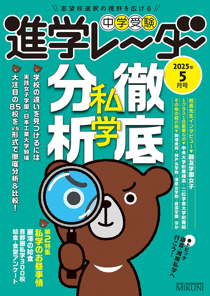 創刊から30年以上の歴史を誇る中学受験の専門誌。独自取材を通じて私立中高一貫校の魅力をお伝えし、中学受験に関する保護者と受験生の行動ノウハウ、迅速かつ的確な入試情報などをお届けします。通常号のほかにテーマを絞った入試直前特別号も発行。6年生はもちろん、4・5年生にも役立つ新鮮な情報が満載です。中学受験をめざす小学生と保護者のバイブル!通常号は年間9号の発行です。